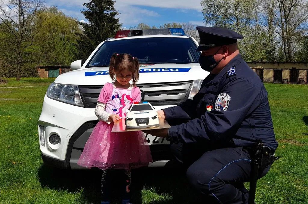 „Az ünnepeltet szemmel láthatóan a rendőrautó nyűgözte le legjobban, mind valódi, mind ehető, tortaformájában egyaránt. A legfinomabb rendőrautó, ahogy fogalmazott leendő munkatársunk, miközben a szolgálati gépjárművet áhítattal körbejárta. Boldog születésnapot Lara!” – írta a rendőrség oldalán.