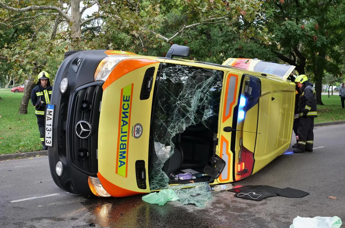 Vinczeffy Levente főhadnagy elmondta: a mentőautó az Apolló utcán közlekedett a Késmárk utca irányából, megkülönböztető fény- és hangjelzést használva, amikor a Nyírpalota útnál a kereszteződésben jobbról nekiütközött egy személykocsi, amelyben ketten ültek. Hozzátette: a baleset következtében a mentőautó felborult, a benne utazók megsérültek.