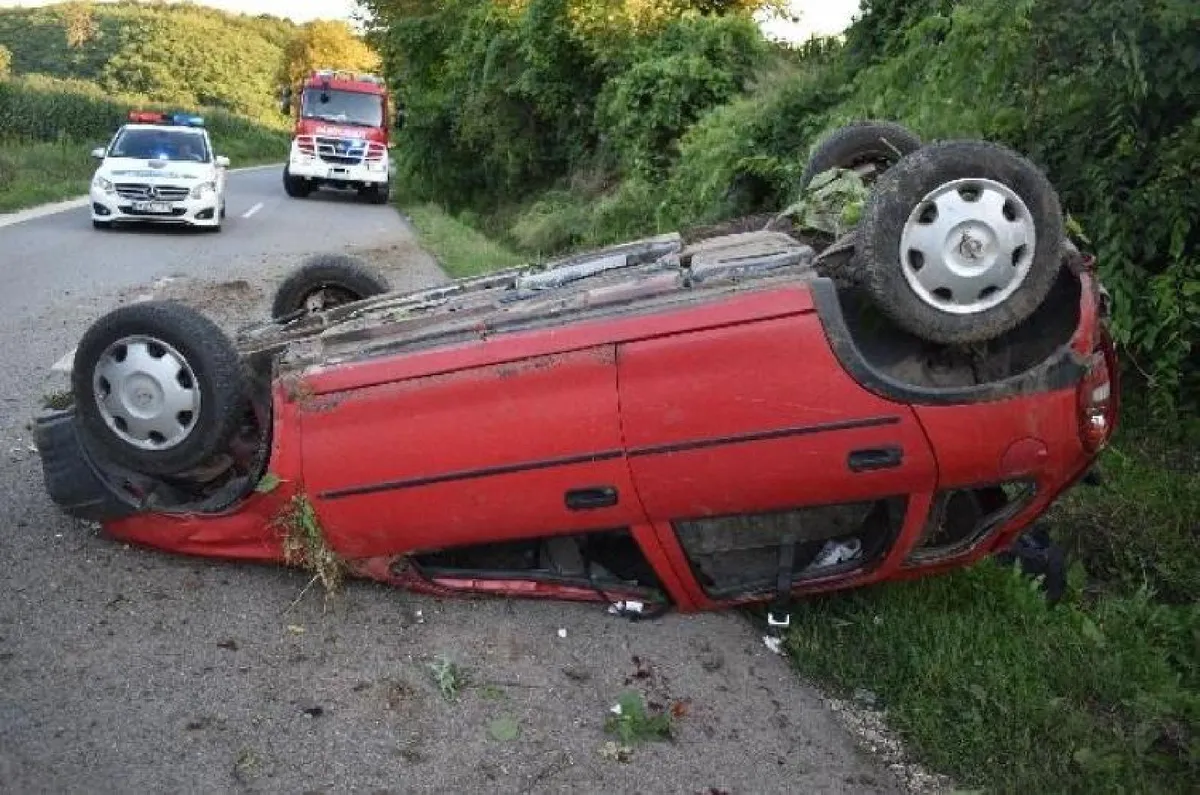 Így a fiatal és két utasa előbb a bal oldali vízelvezető árok oldalának ütköztek, majd visszasodródtak az úttestre, ahol az autó felborult és a tetején állt meg.