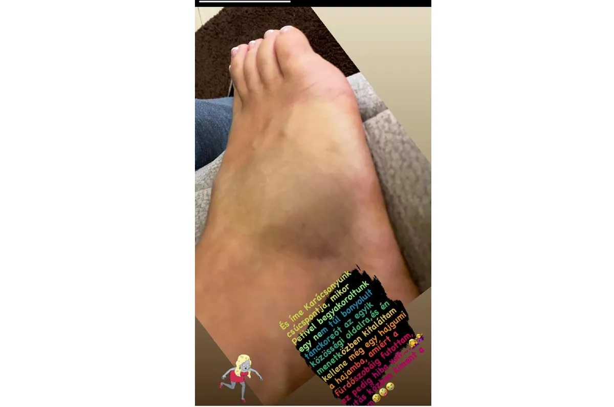 Dundika a belilult és bedagadt lábáról képet is közzétett,  és a „Karácsonyunk csúcspontjaként” hivatkozott a történtekre – vette észre a Ripost.