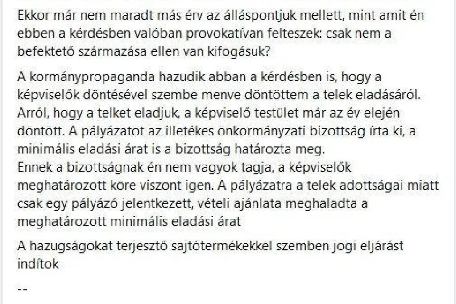 A vitát egy üres telek robbantotta ki, ami az önkormányzat tulajdona. Mint más ingatlanokat, ezt is el akarta adni Baranyi Krisztina. Bár hamar akadt vevő, a szövetségesein nem tudta egykönnyen átvinni a javaslatot.