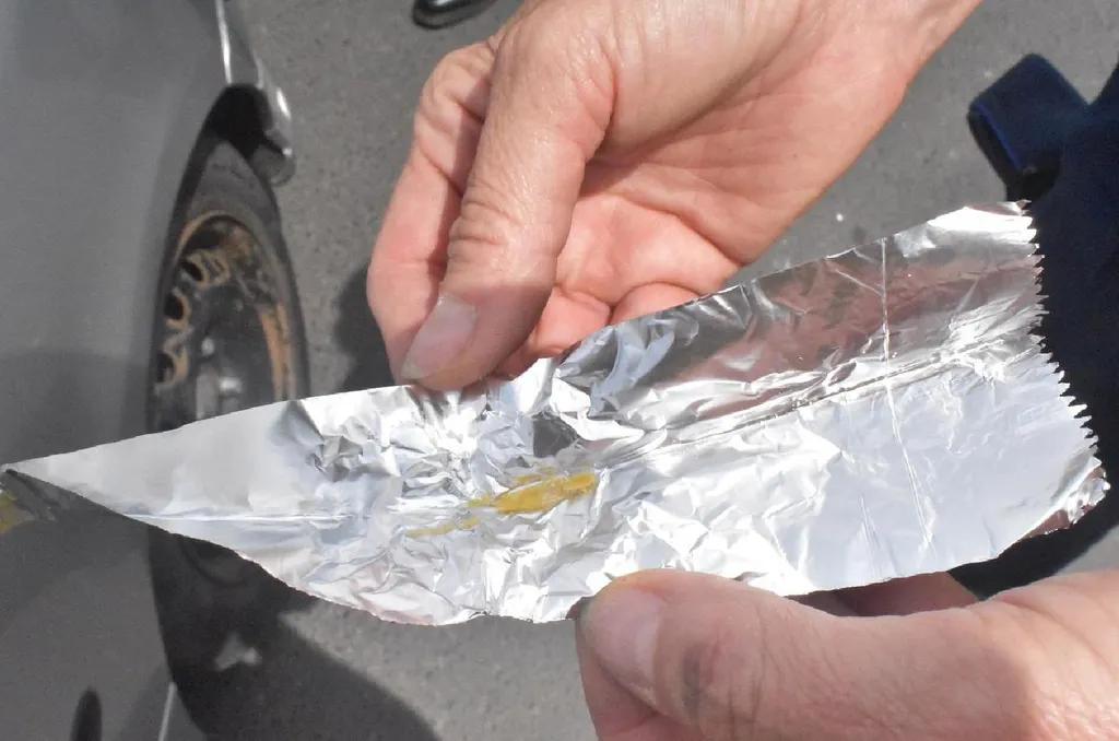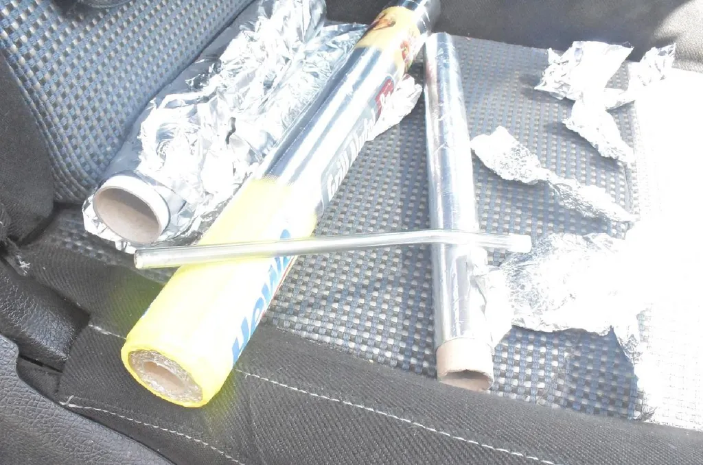 A kocsiban az egyenruhások alufóliába csomagolt sárga, kristályos anyagot, késeket, gázsprayt és egy gumilövedékes fegyvert is találtak, és lefoglalták őket.