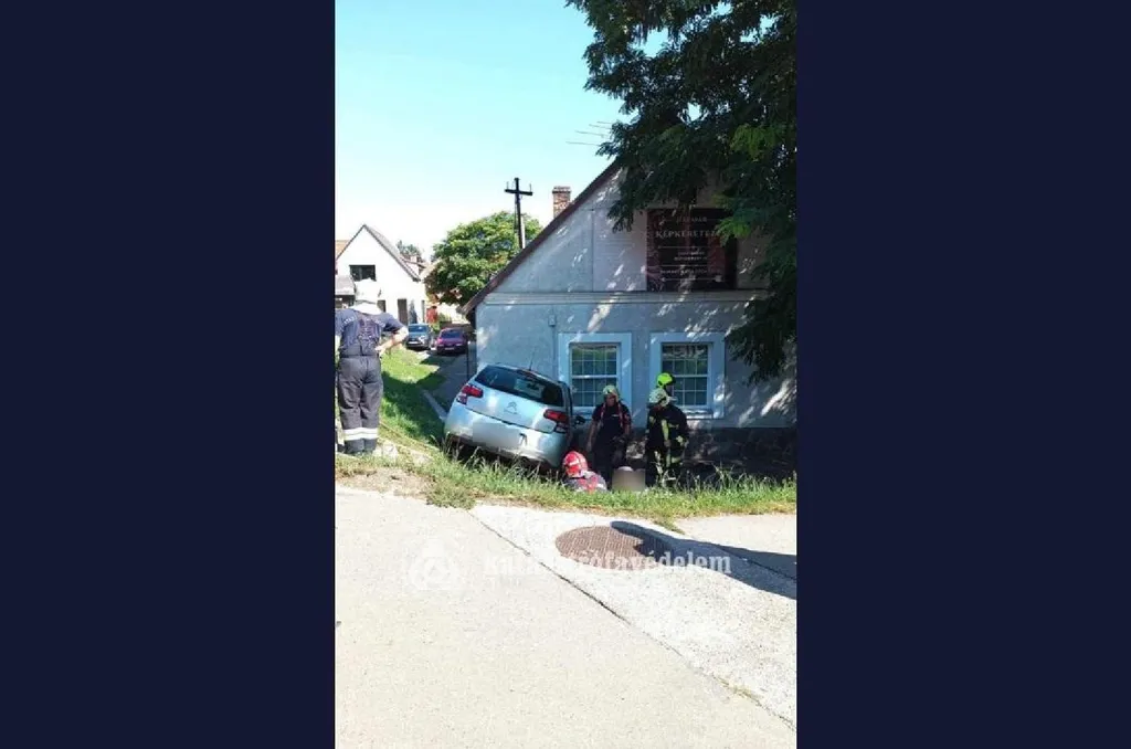 Egy autó ismertelen körülmények között lesodródott az útról, partoldalon legurult, és egy ház falának csapódott.
