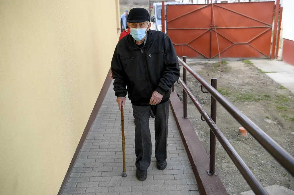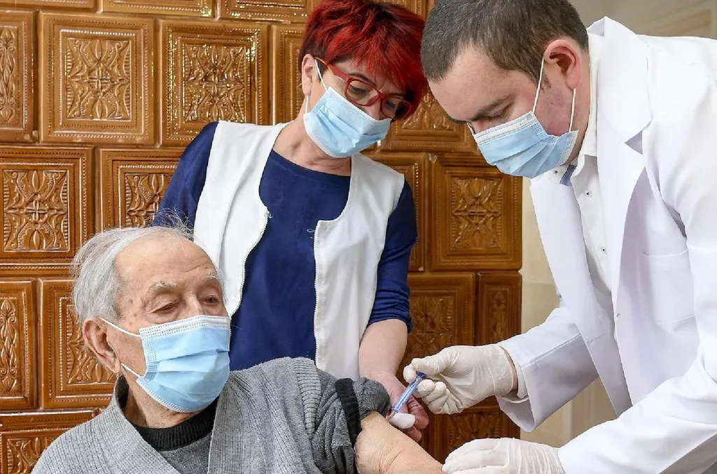 A 100 éves Fejes Lajos bácsit a mezősasi orvosi rendelőben oltották be a Pfizer-BioNTech koronavírus elleni vakcinájának második adagjával 2021. március 4-én.