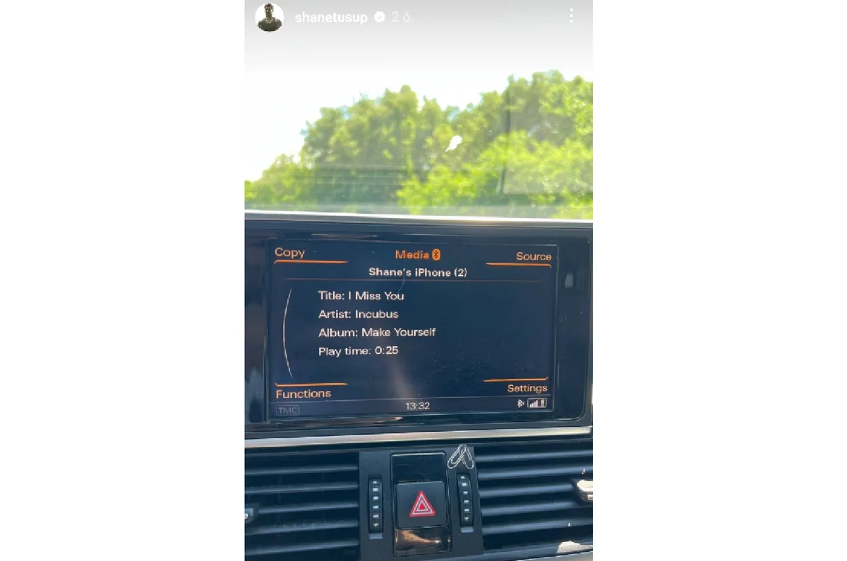 Ilyen apró jel például a férfi autójában szóló I Miss You című dal is az Incubus előadásában, melyet csütörtök délután örökített meg és tett közzé Instagram-sztori formájában.
