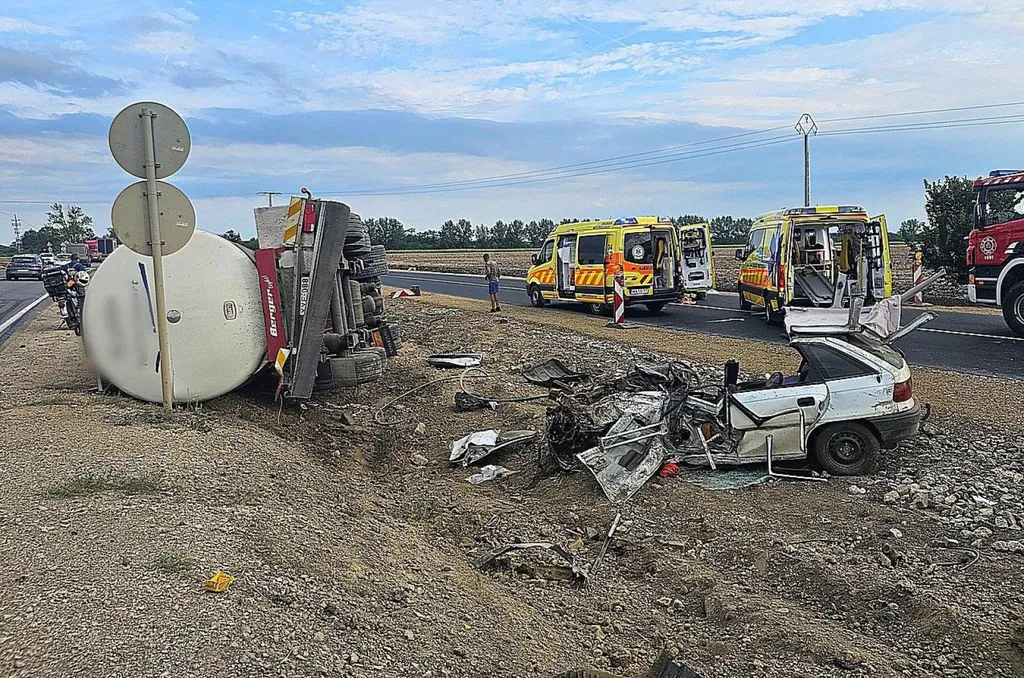 Frontálisan ütközött egy személykocsi és egy kamion a 4-es főút 141-es kilométerénél, Kenderes külterületén. Az óriási ütközés miatt a kamion felborult, az autó pedig teljesen összeroncsolódott, sofőrje be is szorult. A kocsi vezetőjét a tűzoltók emelték ki.
