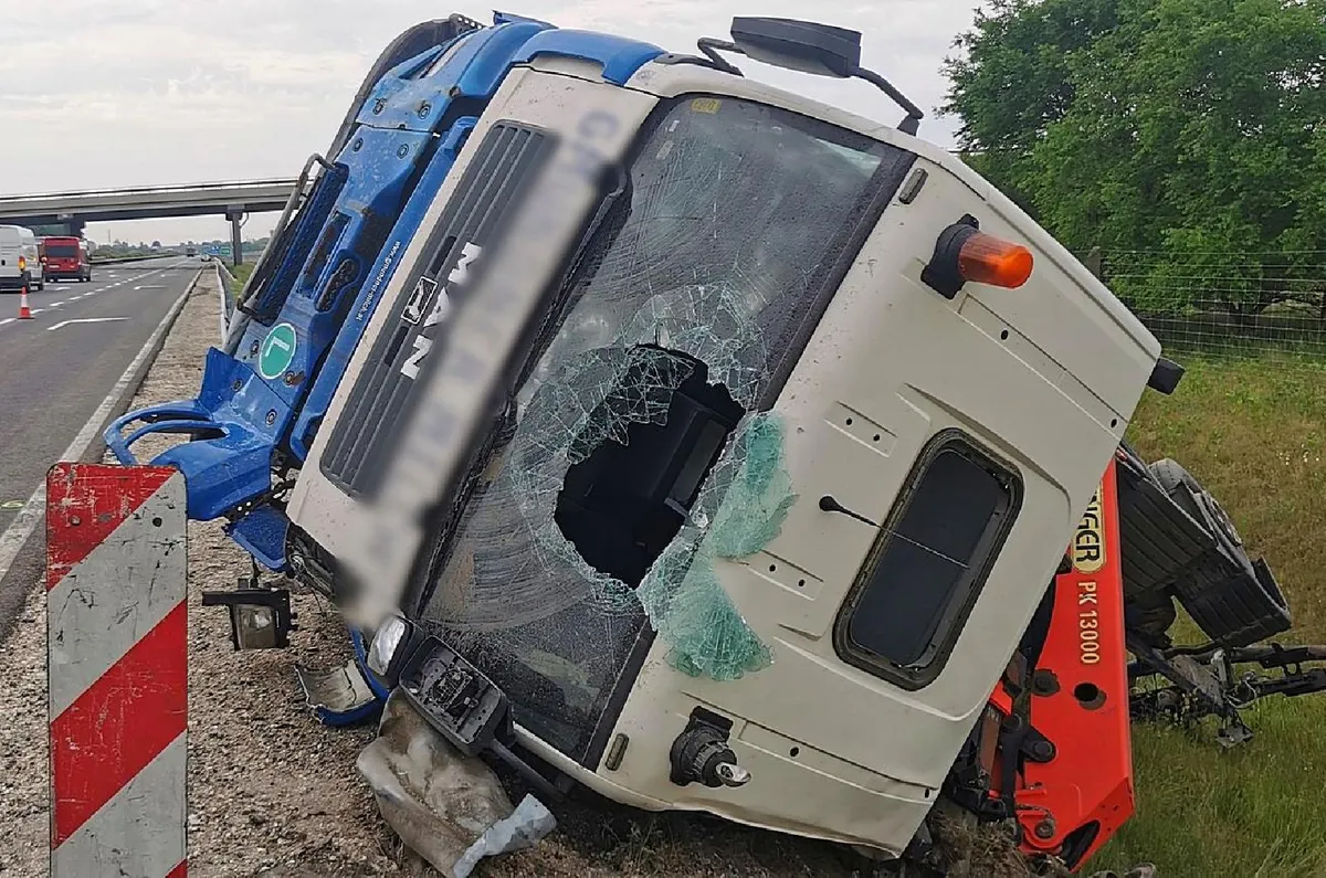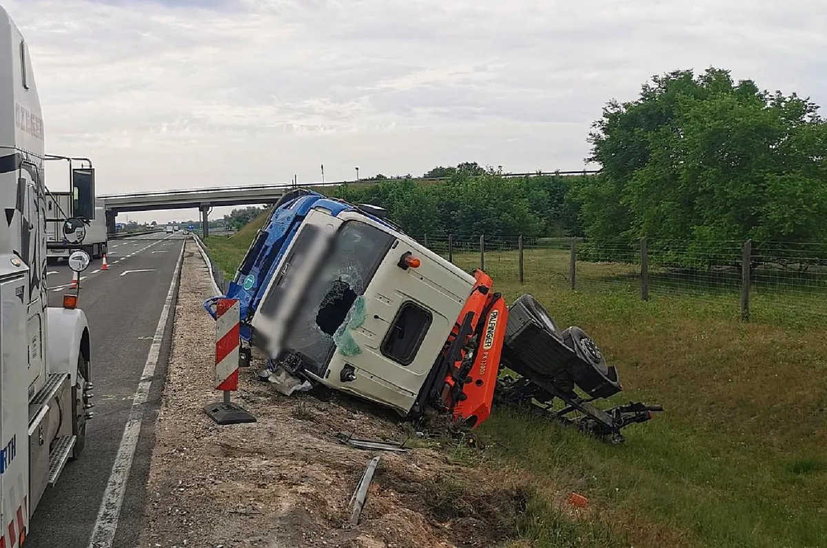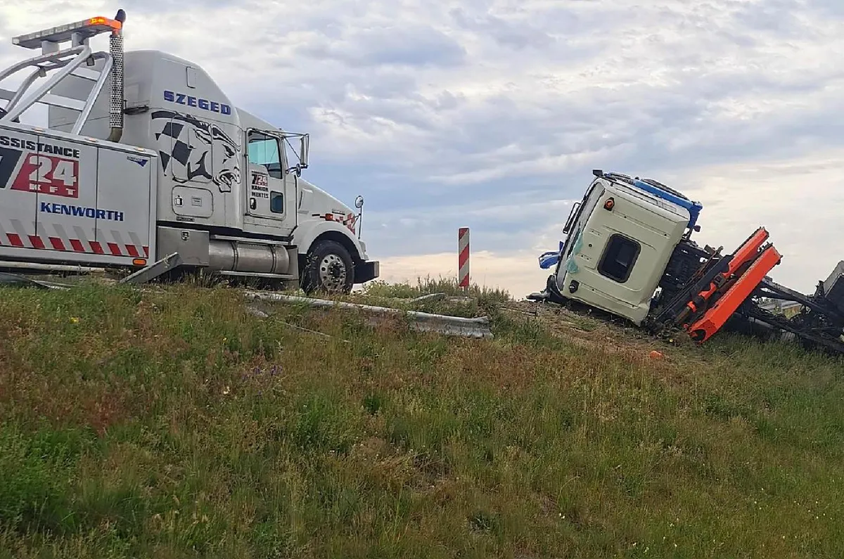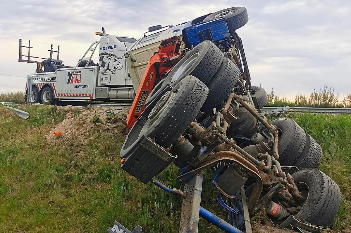Szeged felé haladt az éjszaka a svájci rendszámú teherautó, amikor a mögötte érkező szürke kocsi nagy sebességgel a teherautó hátuljába csapódott, amely az ütközéstől átszakította a szalagkorlátot és az útszéli árokba borult.