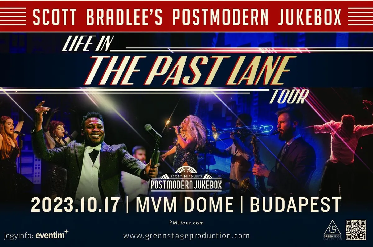 2023. áprilisában az Egyesült Királyságban veszi kezdetét a Scott Bradlee’s Postmodern Jukebox világturnéja. A” Life In The Past Lane” névre keresztelt koncertsorozat állomásai közé Budapest is bekerült. Az amerikai banda 2023. október 17.-én az MVM Dome-ban lép majd fel.