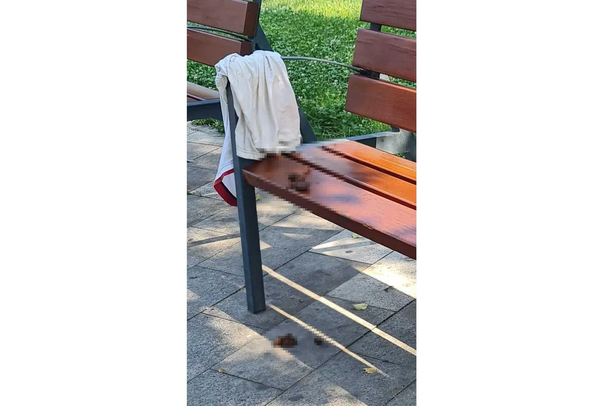 A város meglehetősenforgalmas részén lévő egyik padon és még az alatt is fekália hevert, ami kínzó sanyargatással érhetett fel szinte valamennyi érzékszerv számára.