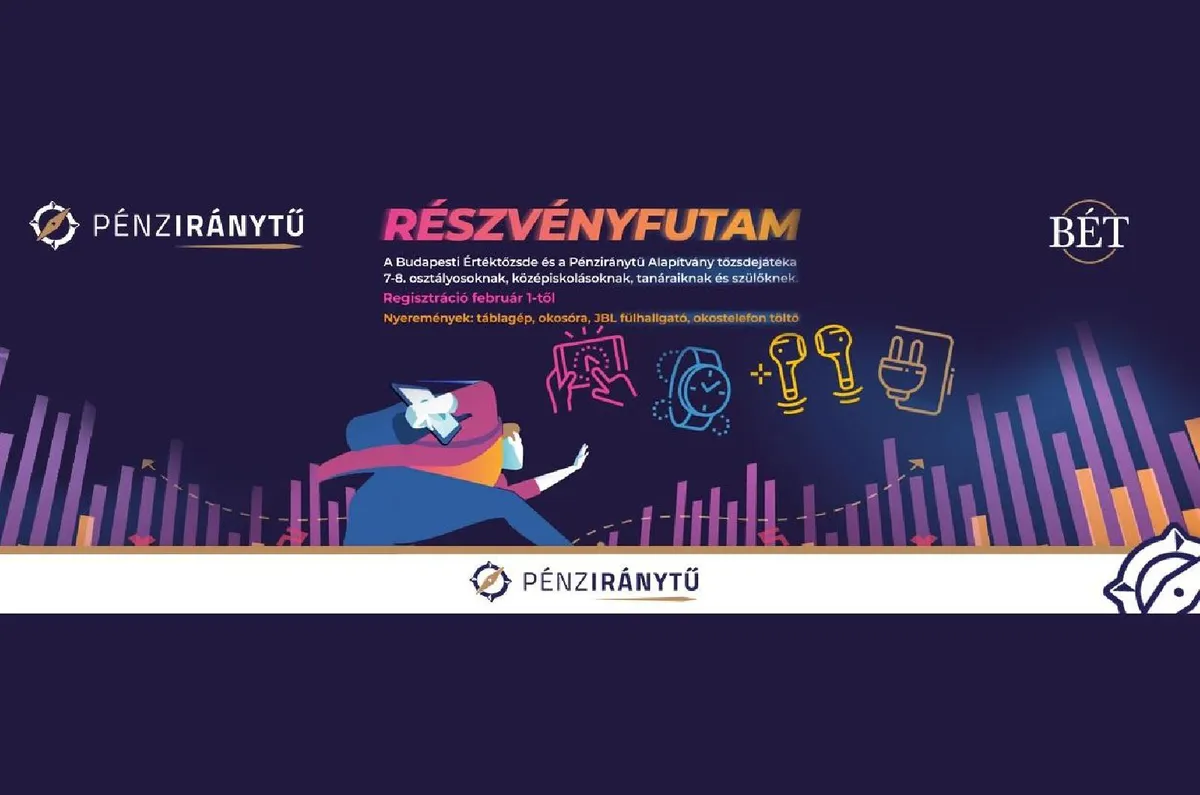 Február 1-jén indul a regisztráció a Budapesti Értéktőzsde és a Pénziránytű Alapítvány közös online tőzsdejátékának, a BÉT Részvényfutamnak az idei fordulójára. A március 6-31. között zajló verseny keretében már a 7-8. osztályos diákok is próbára tehetik tőzsdei befektetési képességeiket a középiskolás fiatalok, szüleik és tanáraik mellett. A legügyesebb tőzsdecápák okoseszközöket, a legjobban teljesítő Pénziránytű Iskolahálózati tag iskolák, diákok és tanárok pedig több mint 1 millió forint értékű nyereményt vihetnek haza.