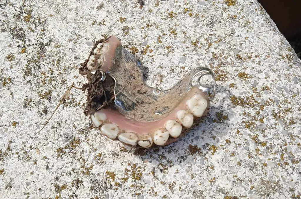 Ahogy az a közzétett képeken is látható, egy felső műfogsor hevert gazdátlanul a gombavadász előtt.