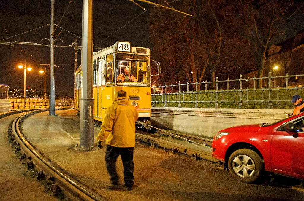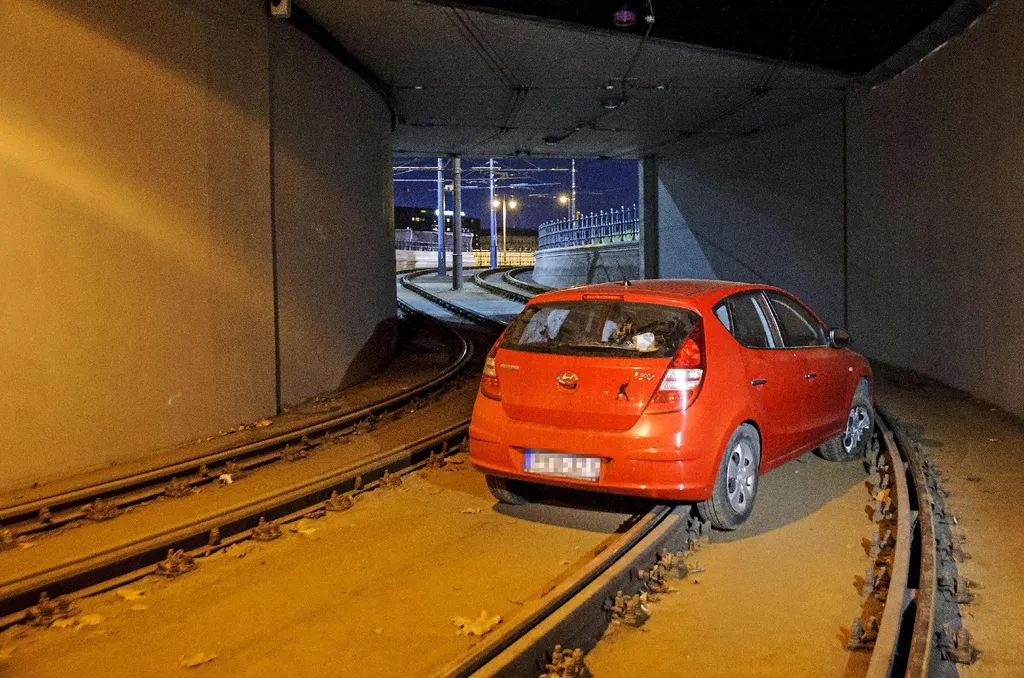 Budapesten a Clark Ádám tér alatti villamosalagútba hajtott és bennrekedt egy autó szombaton este. A járművet egy külön erre a célra a helyszínre érkezett villamossal villamos húzta ki.