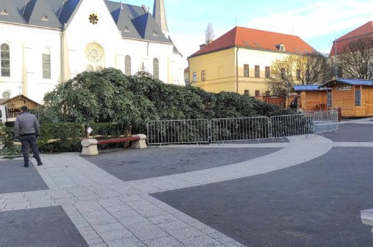 Nyíregyháza karácsonyfája sem viselte jól a zord időjárást. Szerencse a szerencsétlenségben, hogy a Kossuth tér és a Rákóczi utca sarkán felállított fenyő olyan szerencsésen dőlt el, hogy senki és semmi nem sérült.