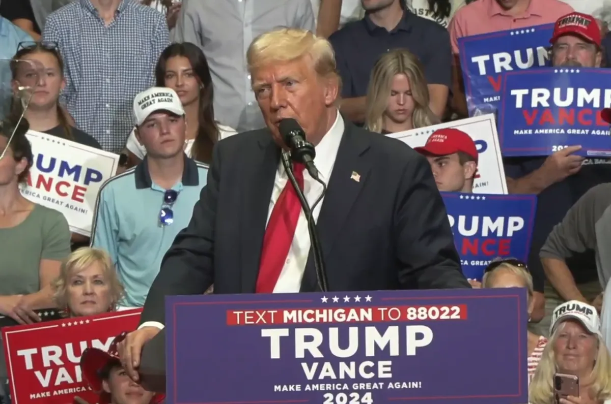 A Grand Rapids városában tartott választási eseményt, szemben a július 13-i nagygyűléssel, zárt csarnokban rendezték, és ez volt az első, amelyen Donald Trump és hétfőn megnevezett alelnök-jelöltje, J.D. Vance közösen vett részt.