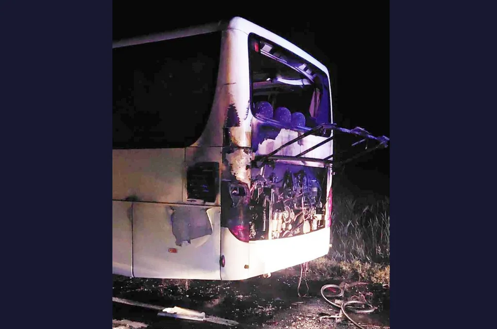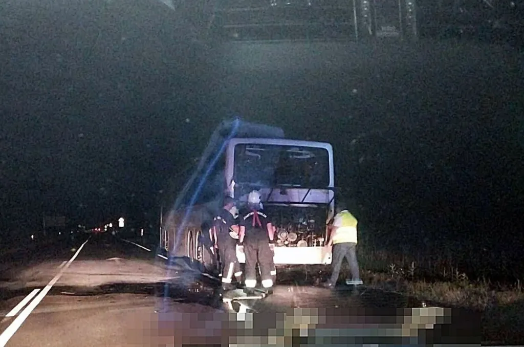 Drámai fotók: Kigyulladt egy utasokat szállító autóbusz Cserkeszőlőnél