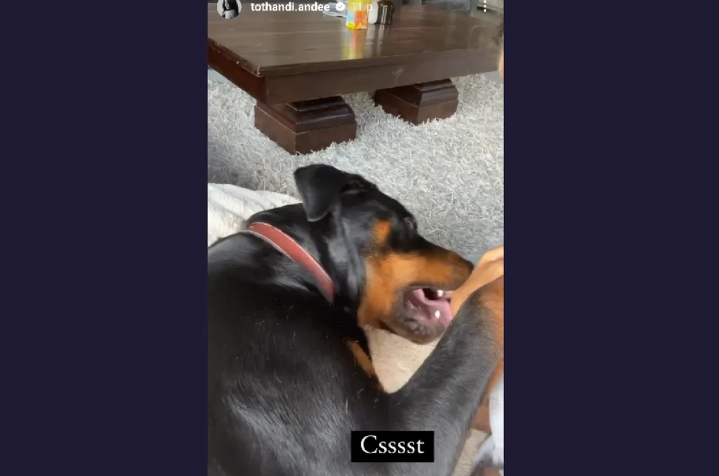 Így történt ez szombaton is, ám amikor a kanapén pihentek, váratlan dolog történt. Andinak rá kellett szólnia Bailey-re, ugyanis hű társa már nem csak nyalogatta, de harapdálta is őt.