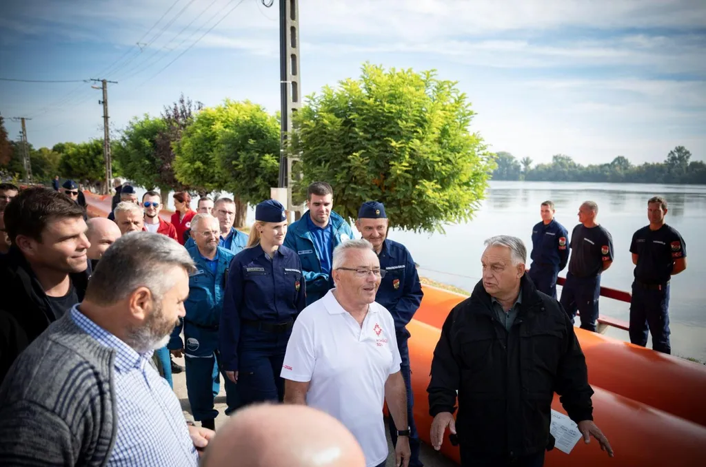 Dunaszekcsőn tartott árvízvédelmi ellenőrzést Orbán Viktor
