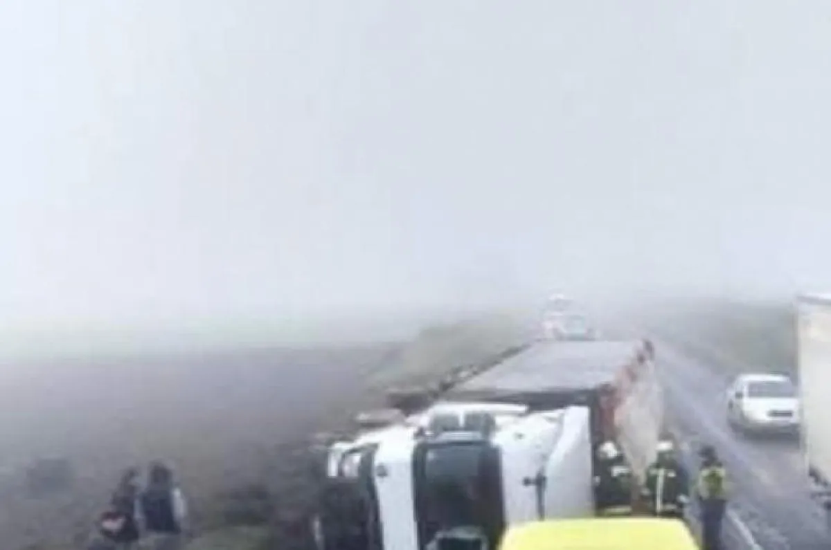 Félpályán, rendőri irányítás mellett halad a forgalom az érintett szakaszon, ahol a köddel is meggyűlik az autósok baja.
