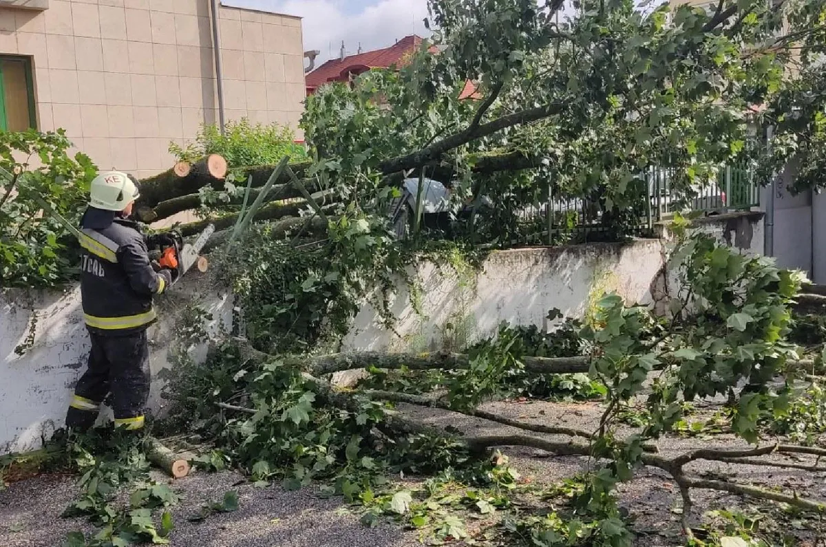 A csapadékot kísérő nagy erejű szél utakra, járművekre, vezetékekre döntött fákat, amelyek eltávolítása ad számottevő munkát a tűzoltóknak kora este óta - tájékoztattak.
