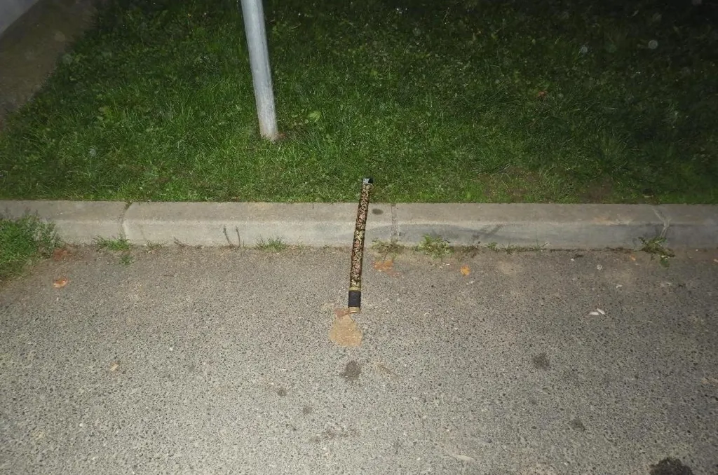 A rendőrök a helyszínen megtalálták az eltört kés pengéjét, a kardhüvelyt és a vascsövet is, azonban a támadó az éles fegyvert egy patakba dobta. A férfit súlyos testi sértés miatt hallgatták ki, majd őrizetbe vették.