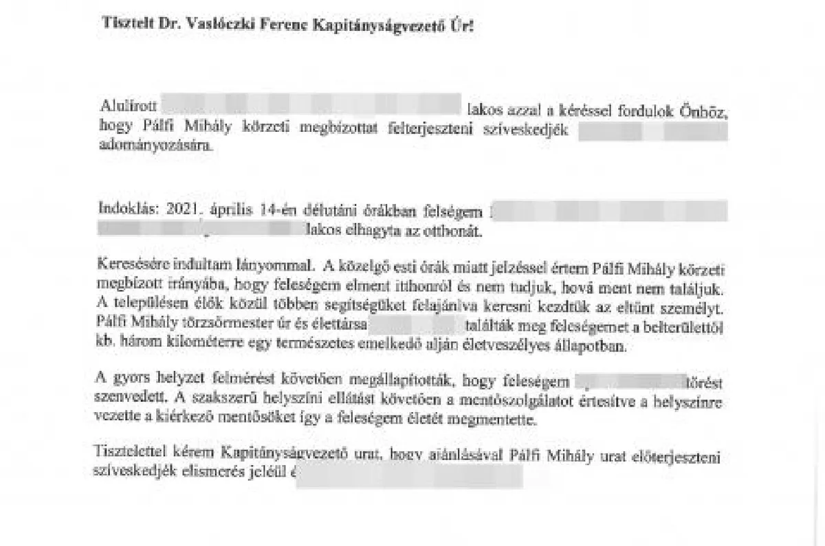 A történteket követően az eltűnt hozzátartozója levélben is megköszönte a szabadnapos körzeti megbízott munkáját.