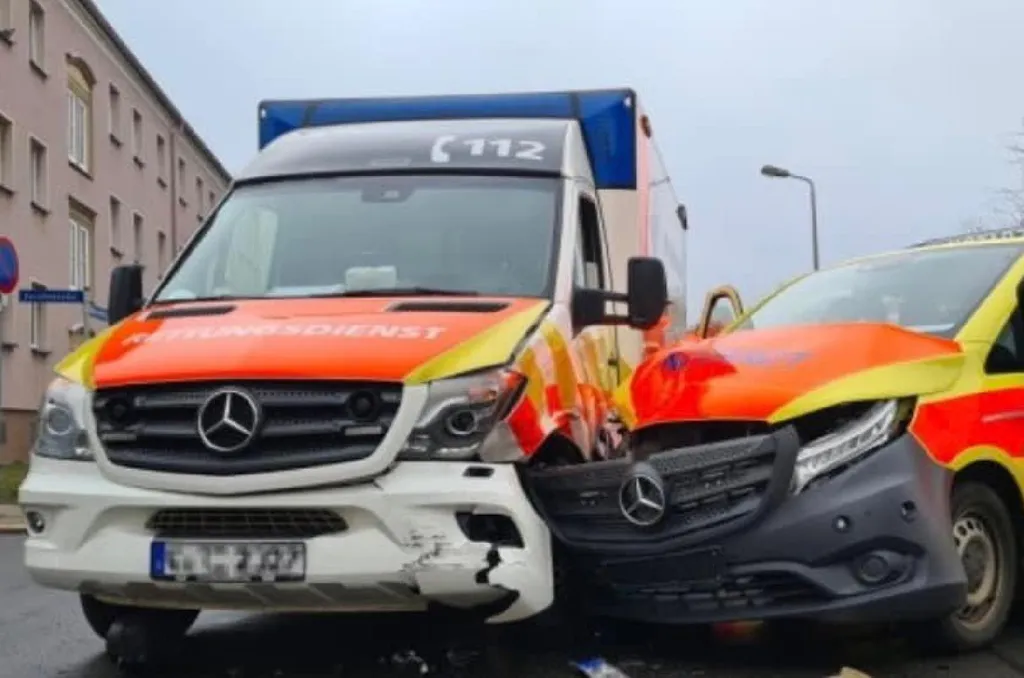 Zwickauban két mentőautót riasztottak ugyanahhoz az esethez, azonban a segíteni igyekvő mentősök a cím közeli kereszteződésben karamboloztak egymással.
