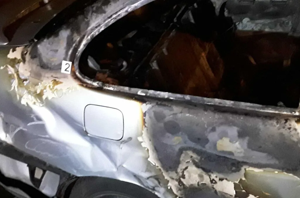 A felgyújtott autót a tűzoltók eloltották és megállapították, hogy szándékos gyújtogatás történt.