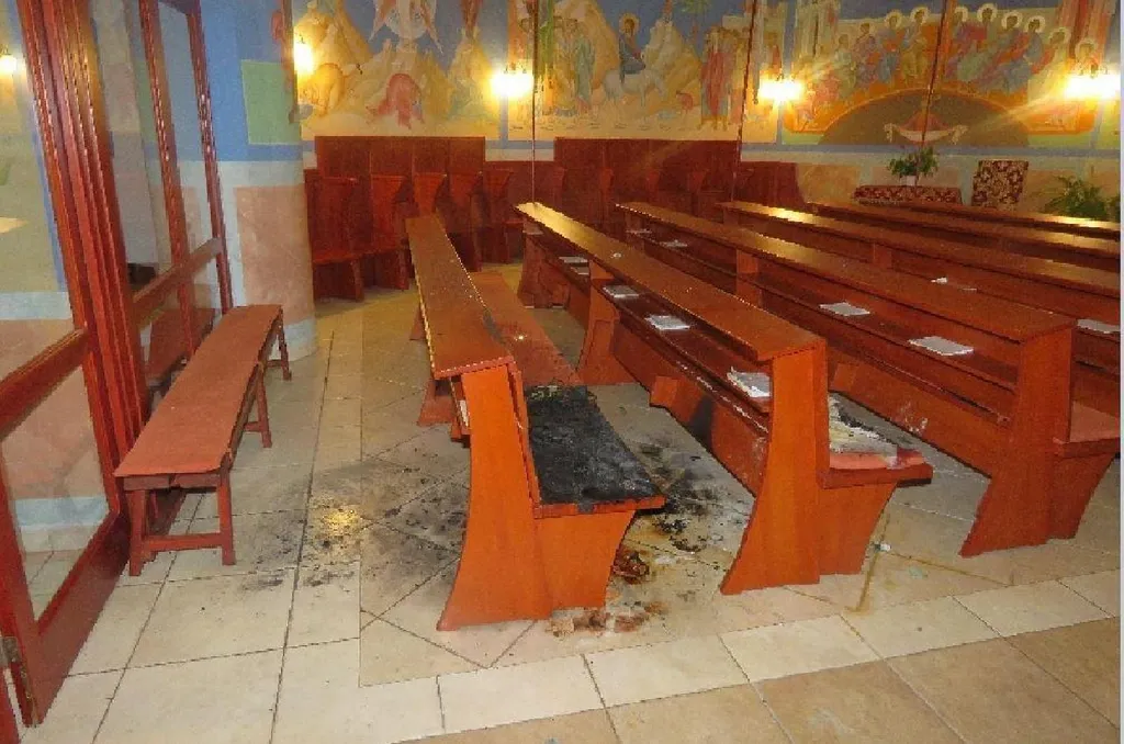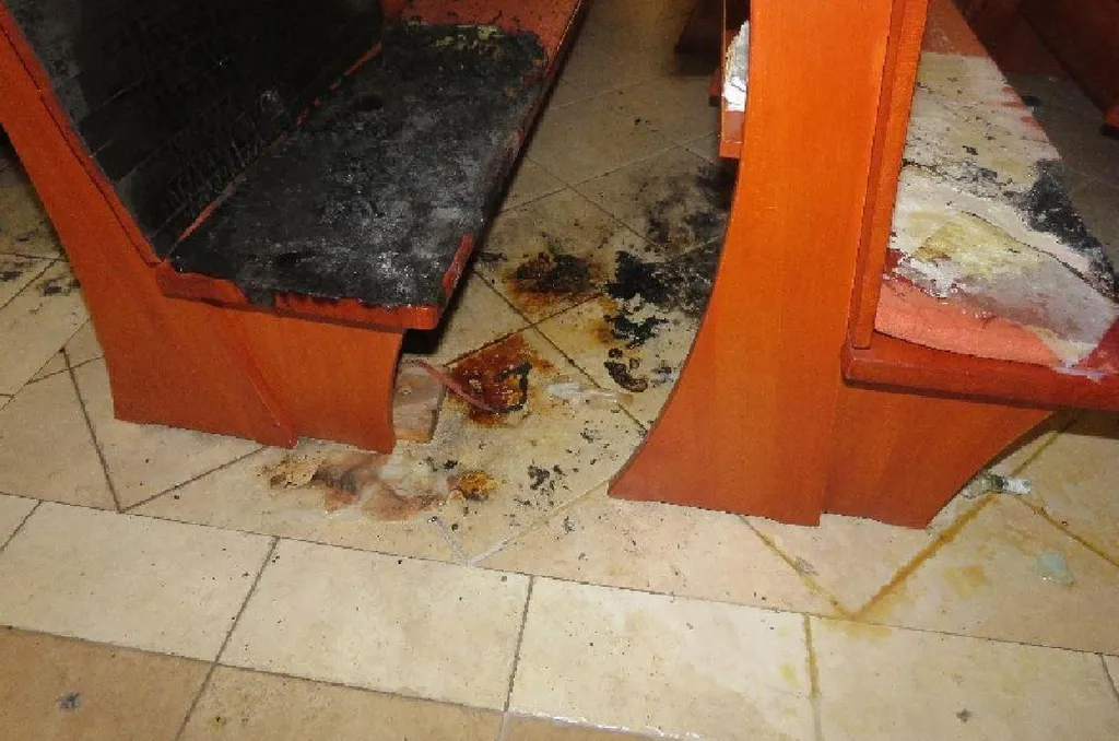 A férfi először baltával betörte a templom ajtaját, majd felgyújtotta a hátsó padokat.