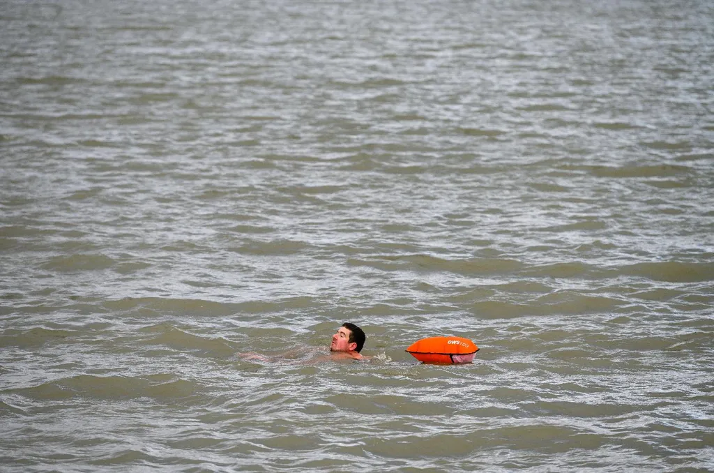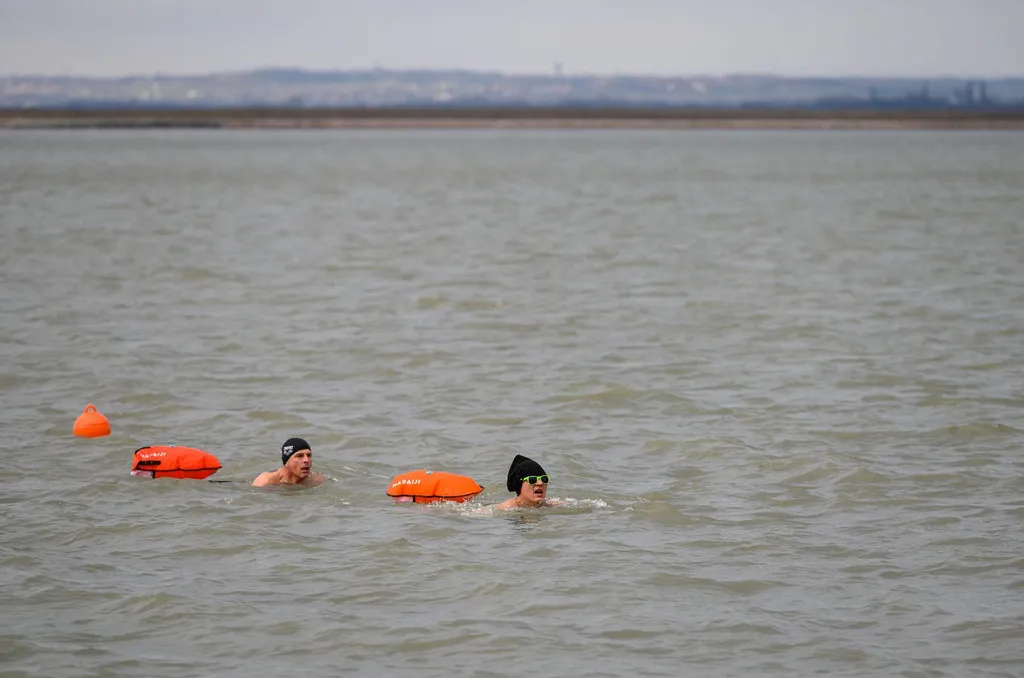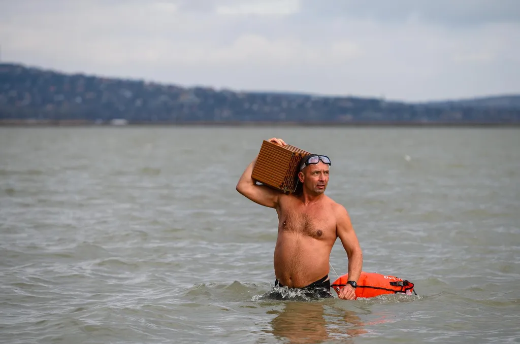 A résztvevőknek 150 méteres távot kellett teljesíteniük a 2,8 fokos Velencei-tóban a gárdonyi kvalifikáción vasárnap.