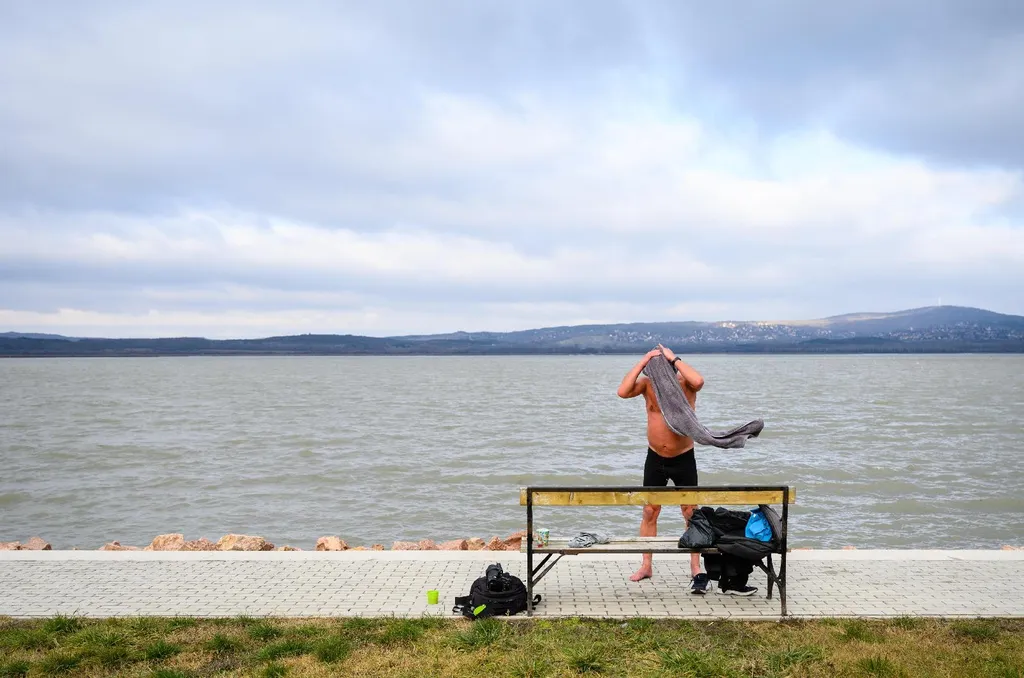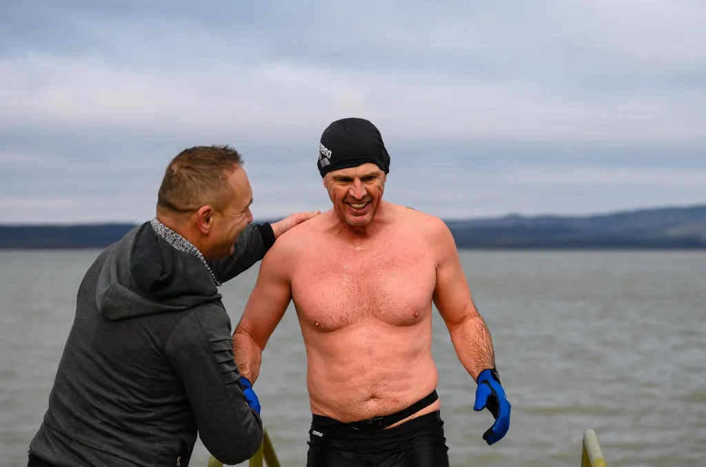 Elképesztő. A 2,8 fokos Velencei-tóban úszkáltak, képek is készültek
