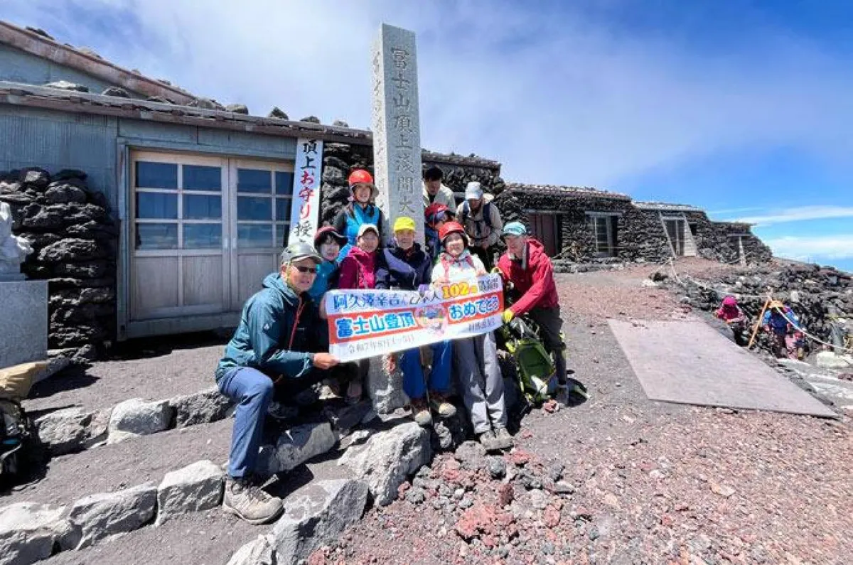 Akuzava 70 éves lányával, unokájával és annak férjével, valamint a helyi hegymászóklubban szerzett négy barátjával vágott neki augusztus elején a legmagasabb japán hegycsúcs meghódításának.