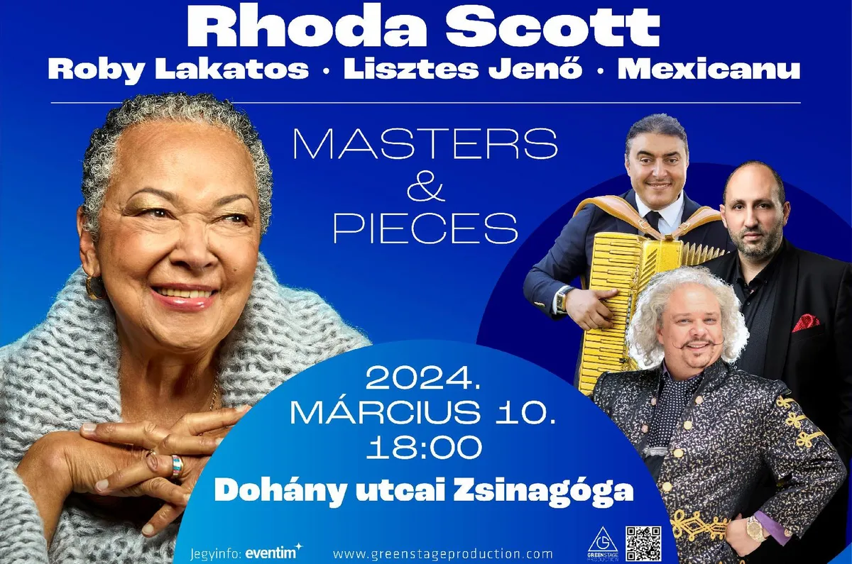 2024. március 10-én este 18 órától olyan négy élő legenda lép a Dohány utcai Zsinagóga színpadára, mint Rhoda Scott, a Hammond-orgona királynője, Roby Lakatos, az "unortodox cigány fúziós zene" atyja, Lisztes Jenő a cimbalom csodálatos művésze, és Mexicanu a harmonika császára a „Masters & Pieces” koncert keretein belül.