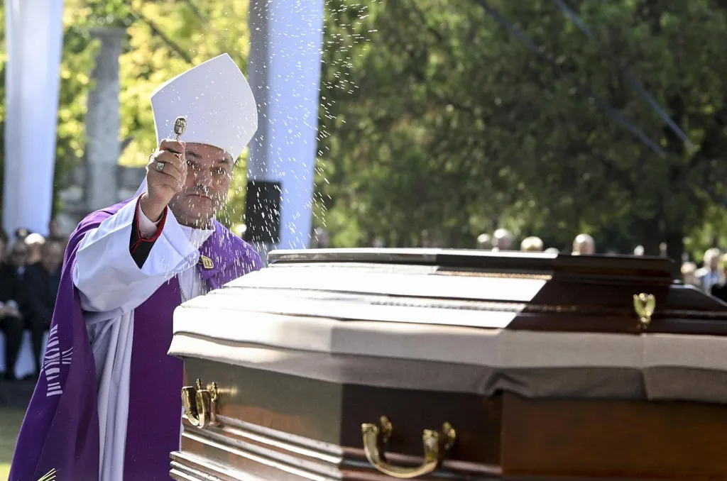A temetési szertatást megelőzően az elhunytért felajánlott szentmisét a Jézus Szíve Jezsuita templomban tartották.