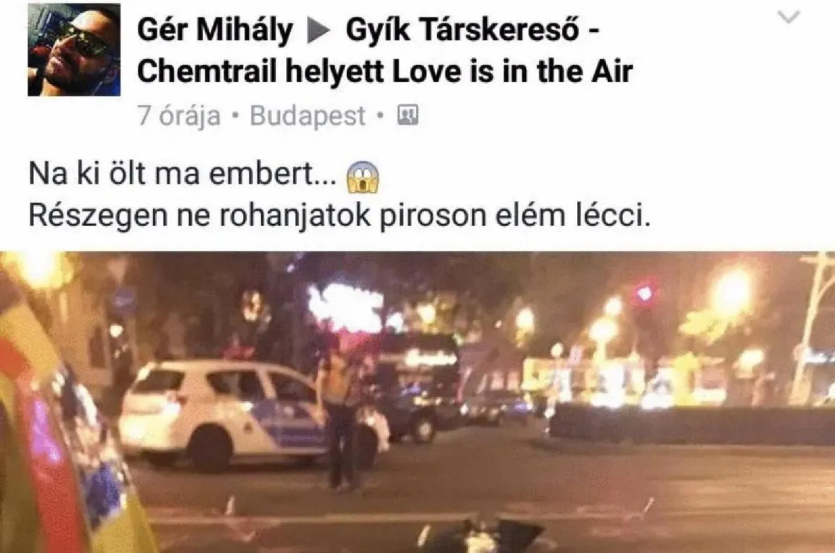 Még 2016. augusztus 26-án történt egy halálos baleset a fővárosi Andrássy úton, miután a baloldali Párbeszéd jelöltje, Gér Mihály elütött egy zebrán áthaladó fiatal párt - közölte a BENNFENTES.