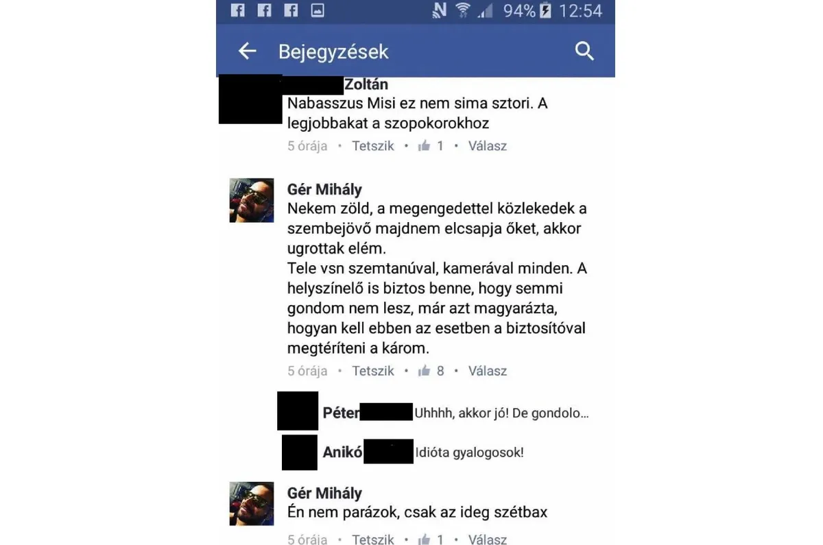 A lap korábbi képernyőmentéseit látva elmondható, hogy a baloldali ellenzék 2022-es, Pest 10-es, monori embere szinte kérkedett és hencegett azzal, hogy elütött egy fiatal párt.
