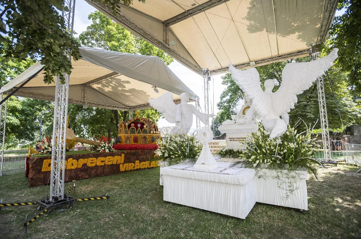 Völner Pál, a térség fideszes országgyűlési képviselője arról beszélt: néhány éve kialakult hagyomány, hogy Esztergomból virágkocsik indulnak Debrecenbe, a virágkarneválra. Idén a Szent Koronát ábrázoló kocsin kívül készült egy a Nemzetközi Eucharisztikus Kongresszus tiszteletére is.