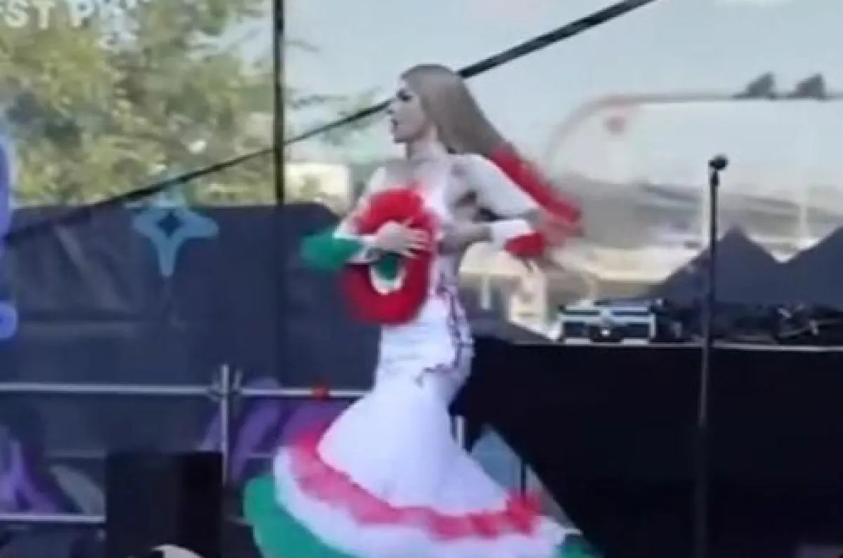 Déri Stefi osztotta meg közösségi oldalán azt a meghökkentő jelenetet, amelyen a szombaton, a Pride színpadán egy nőnek öltözött férfi táncolás közben elhajítja a kokárdát, majd helyette transzgender-zászlót lobogtat.