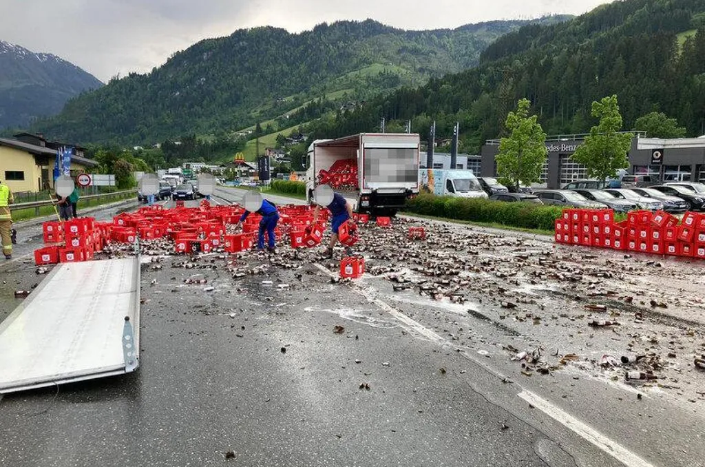 Felkavaró látvány tárulhatott a sörimadók szeme elé hétfőn este Ausztria nyugati részén, a Salzburg tartománybeli Sankt Johann im Pongau közelében. Egy sörrel megrakott teherautó rakományának nagy része ugyanis kiborult az útra, miután a raktér bal oldalán meghibásodhatott egy zár – közölte a Kronen Zeitung.