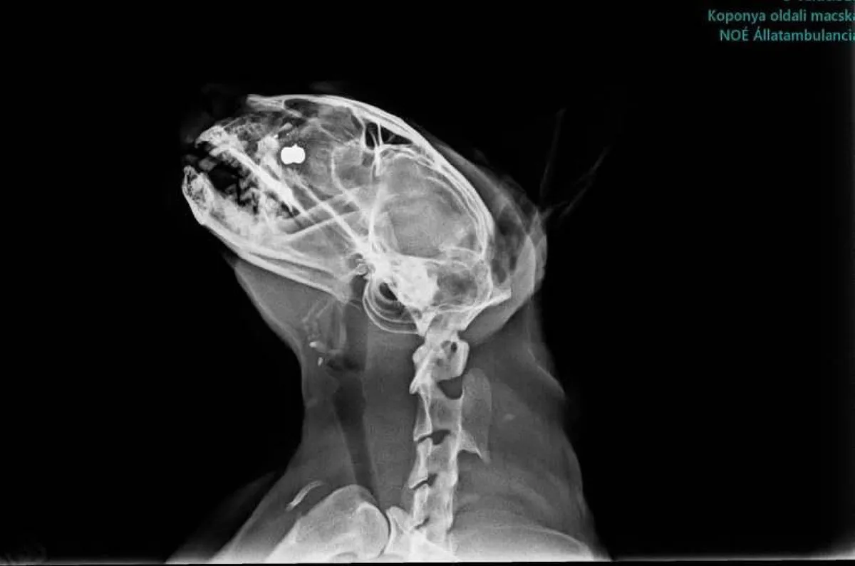 A macskáról készült röntgenképet megosztotta közösségi oldalán, amelyen látható, hogy milyen mélyre fúródott a golyó.