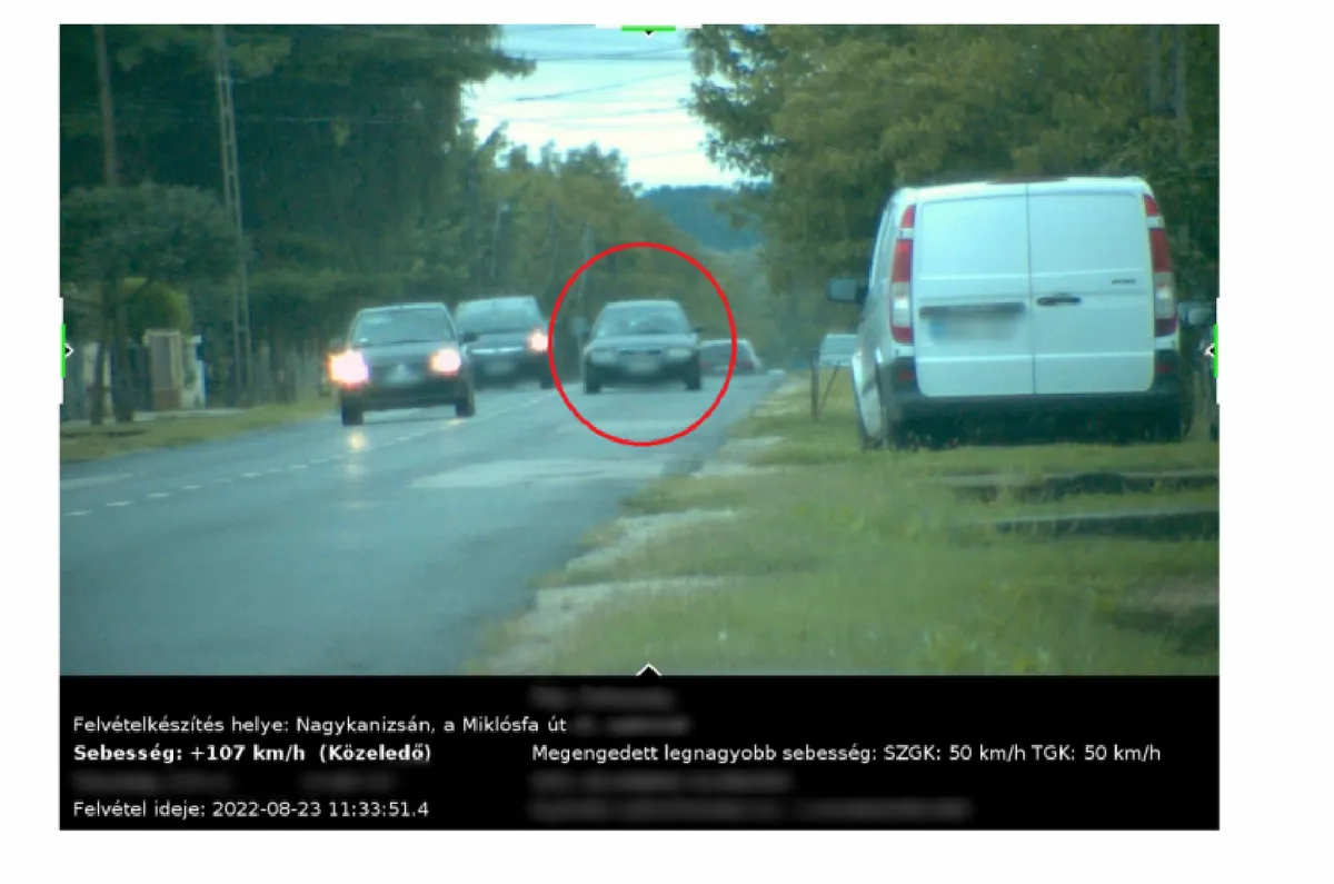 A rendőrök augusztus 23-án délelőtt sebességmérést végeztek Nagykanizsán a Miklósfai úton és észlelték, hogy egy személyautó sofőrje 11 óra 10 perckor a megengedett 50 helyett 73 kilométeres sebességgel közlekedett. Nem sokkal később, 11 óra 33 perckor pedig a visszaúton már 107 kilométerrel hajtott.