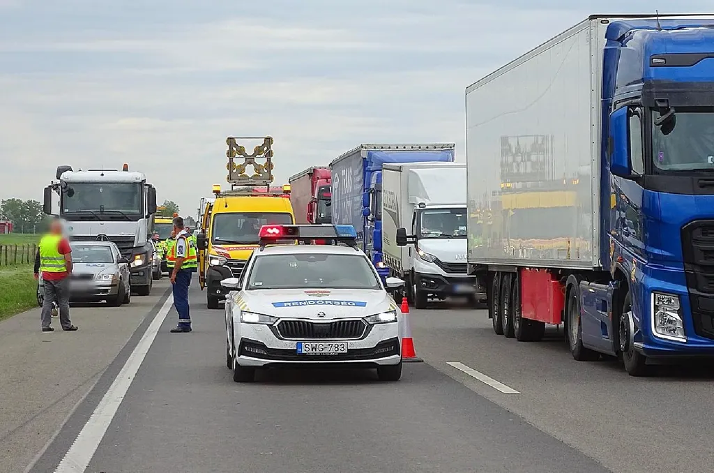 A Bács-Kiskun Vármegyei Hírportál információi szerint a Kecskemét felé vezető oldalon a sofőr letért az útról, majd mikor ellenkormányzott, a teherautó irányíthatatlanul keresztbevágódott a sztrádán, és fel is borult. A vezető nem sérült meg a balesetben.