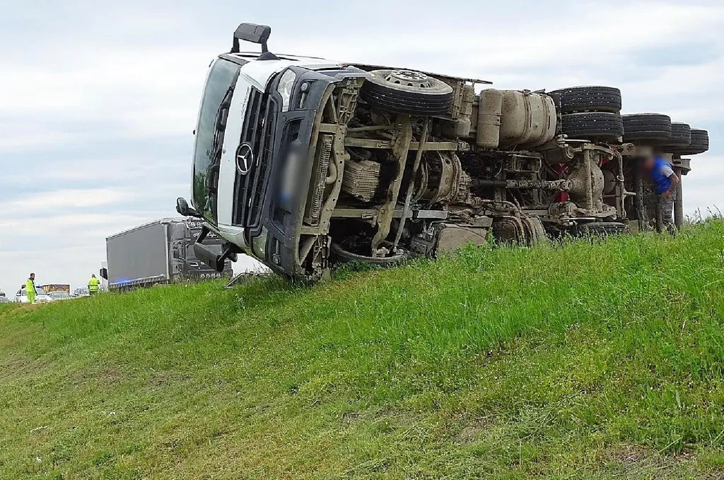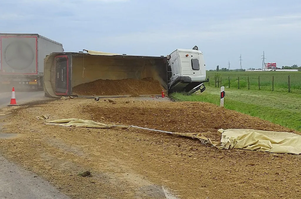 Balesetet szenvedett egy földet szállító kamion az M5-ös autópályán, Lajosmizse közelében csütörtökön délután.