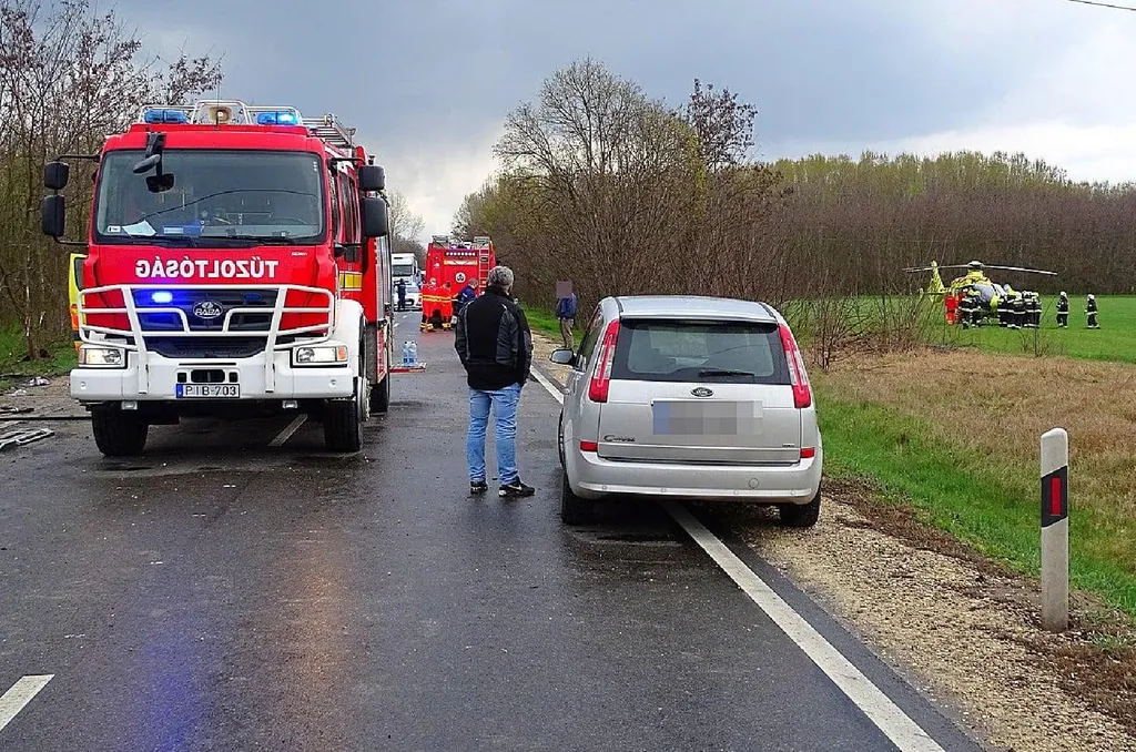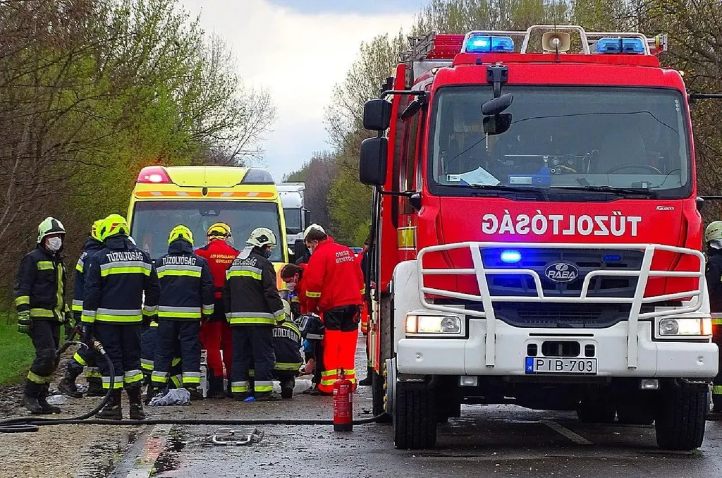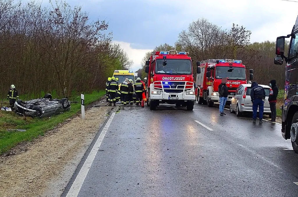 Az ütközéstől az egyik kocsi árokba csapódott és fejtetőre borult, ebből a tűzoltók feszítőhenger segítségével két embert szabadítottak ki.