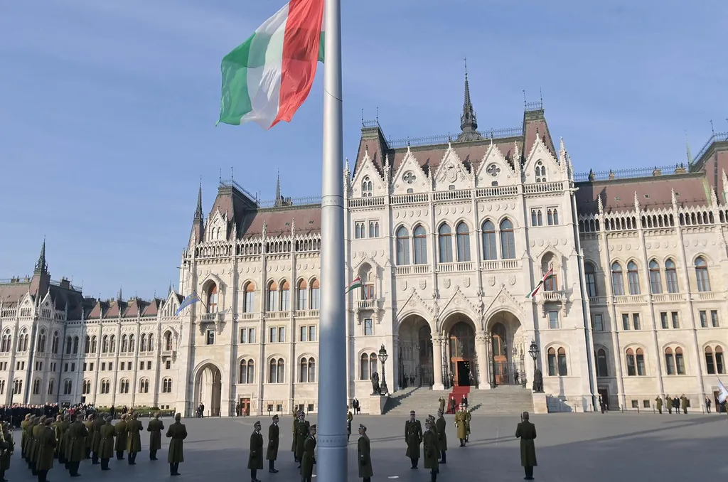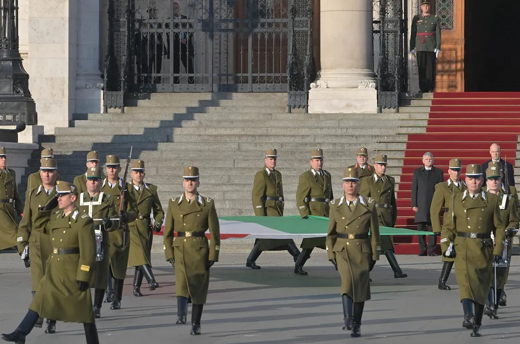 Katonai tiszteletadással, Kövér László, az Országgyűlés elnöke és Szalay-Bobrovniczky Kristóf honvédelmi miniszter jelenlétében felvonták a nemzeti lobogót az 1956-os forradalom és szabadságharc 68. évfordulóján szerda délelőtt Budapesten, az Országház előtti Kossuth Lajos téren.