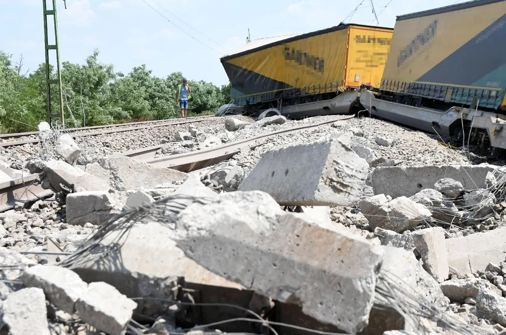 A tájékoztatás szerint Kétpónál egy tehervonatból 9 konténerszállító kocsi kisiklott vasárnap délben, elzárta mindkét vágányt a forgalom elől. Szolnokról a helyszínre érkezett egy nagy teherbírású vasúti daru, amellyel a kisiklott kocsikat emelik be - írták. A jobb vágányon egy felsővezetéki tartóoszlop kidőlt és összetört, mintegy 2 kilométeren megrongálódott a vasúti pálya, a sínek és a vasbetonaljak használhatatlanokká váltak, helyenként új pályát kell építeni - részletezték a károkat. A bal vágányon sem közlekedhetnek a vonatok, mert az is megrongálódott, úgynevezett vágánygeometriai hibák keletkeztek. Ezek helyreállításán dolgoznak, illetve a másik vágányon lévő kocsik beemelését készítik elő a daru megfelelő letalpalását kialakítva - tájékoztattak, hozzátéve: a vasúti daru pozíciójának megváltoztatására is szükség lesz, a Szajol-Szentes-Hódmezővásárhely-Békéscsaba-Mezőtúr útirányon át fordítják meg a speciális munkagépet.