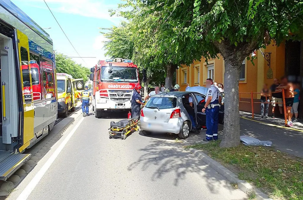 Villamos és személyautó ütközött Hódmezővásárhelyen a Bajcsy Zsilinszky Endre és a Gonda József utca kereszteződésénél szerdán – közölte a Tények tudósítója.