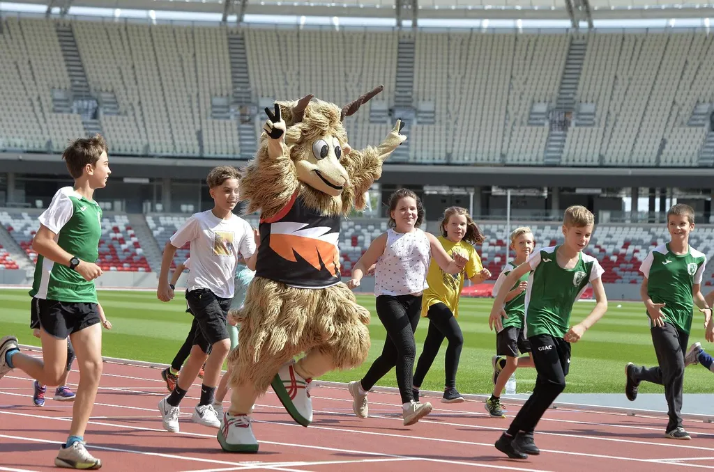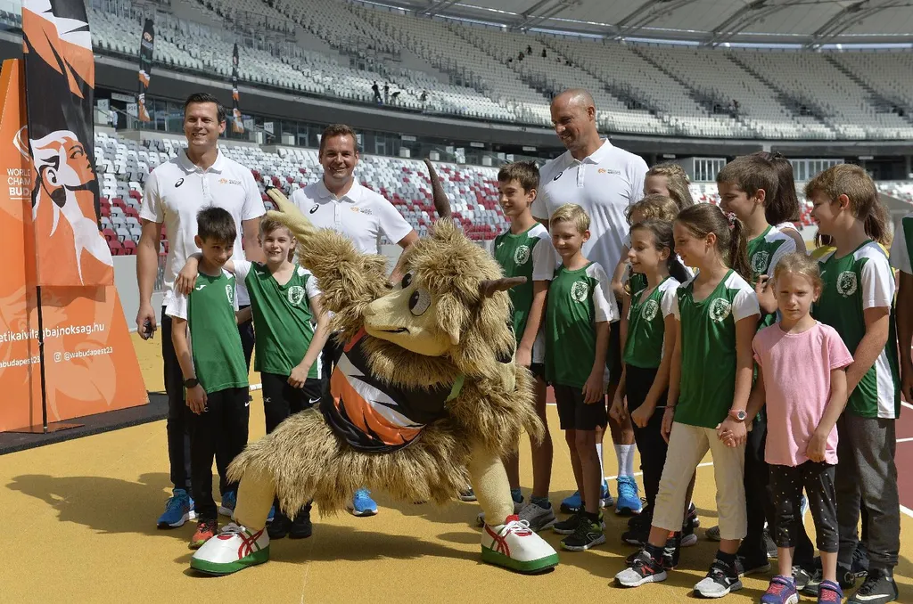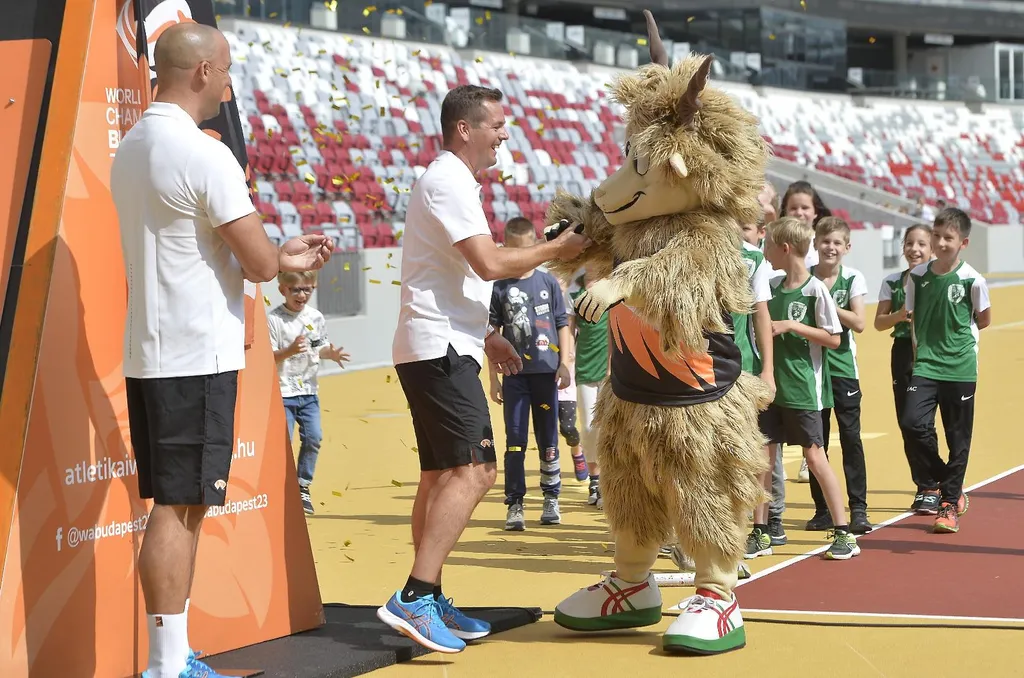 - mondta Schmidt Ádám sportért felelős államtitkár, majd Németh Balázzsal együtt beinvitálták a Nemzeti Atlétikai Központba a kabalafigurát, amely a MATE-GEAC fiatal atlétáival vonult be a pályára, és adott ízelítőt "csintalan természetéből".