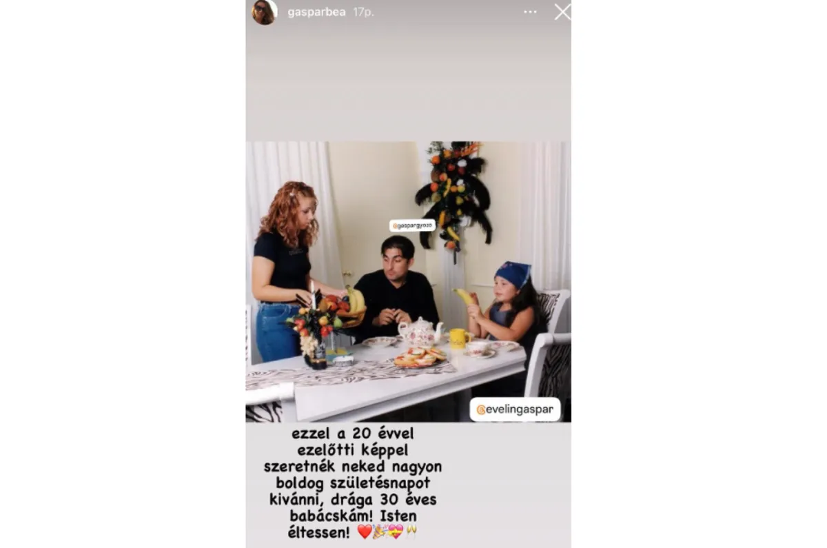 24 óráig elérhető Instagram-sztorijában pedig egy eddig talán sosem látott, 20 évvel ezelőtti fotót osztott meg, amelyen Bea, Győző és Evelin is szerepel.