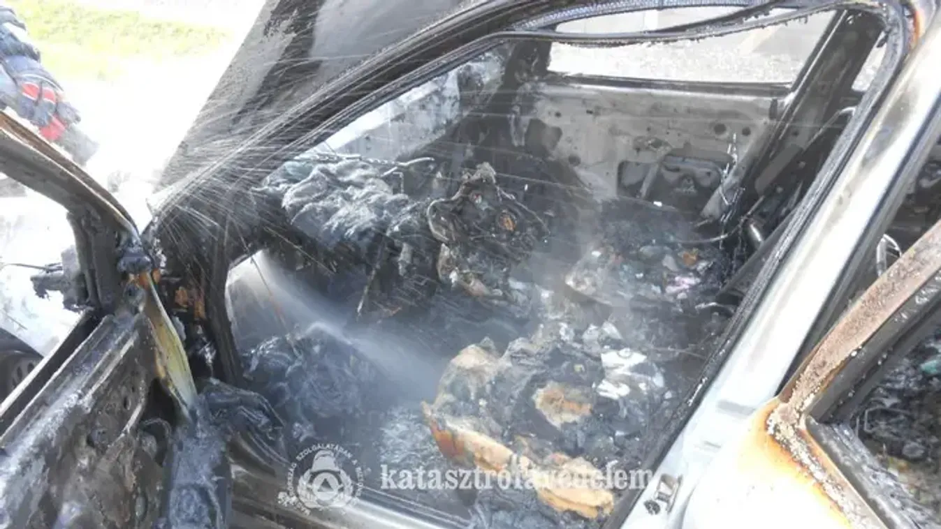 Menet közben kigyulladt, és porrá égett egy autó Nógrádban – Fotókkal