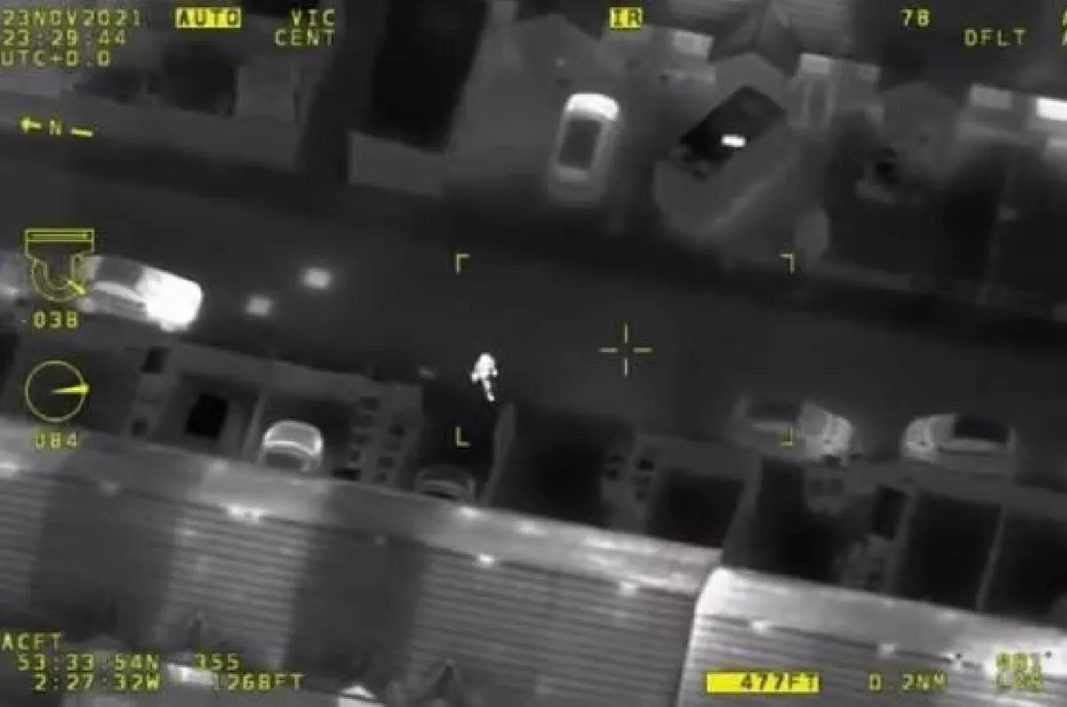 A menekülő férfit a helikopterpilóta utasításai segítségével sikerült sarokba szorítani egy sűrűn beépített területen. Hall ekkor döntött úgy, hogy ott hagyja az autót és gyalog folytatja menekülését. Ezután a helikopter kamerája észrevette, hogy egy házba szalad be.